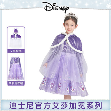 迪士尼童装艾莎公主裙女童连衣裙春秋款小女孩生日裙子送爱莎披风
