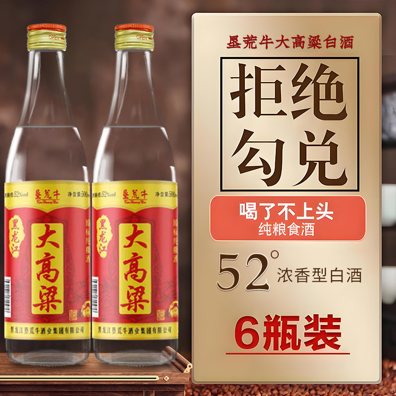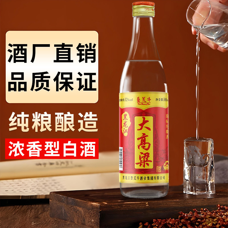 红高粱酒52度42度白酒浓香正宗东北特产纯粮食酿造固态发酵垦荒牛