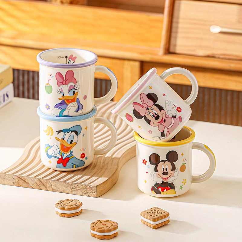 迪士尼正版米奇米妮陶瓷喝水杯子马克杯儿童牛奶刻度杯女生高颜值