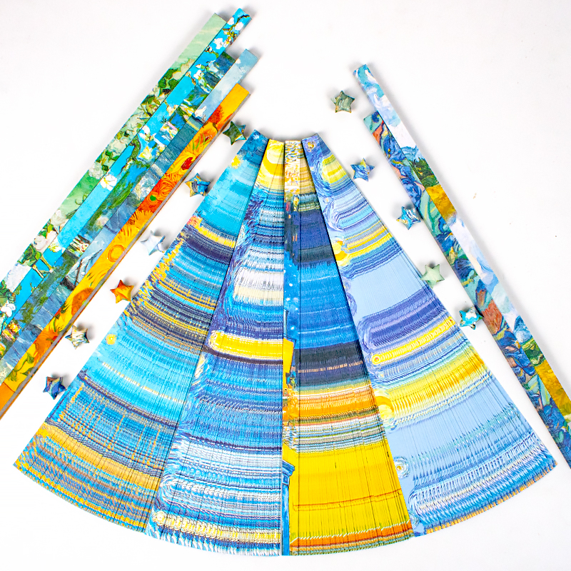 梵高星星折纸叠星星玻璃瓶小星星折星星专用纸幸运星彩色纸条五角星彩纸手工diy礼物夜光许愿瓶儿童高颜值