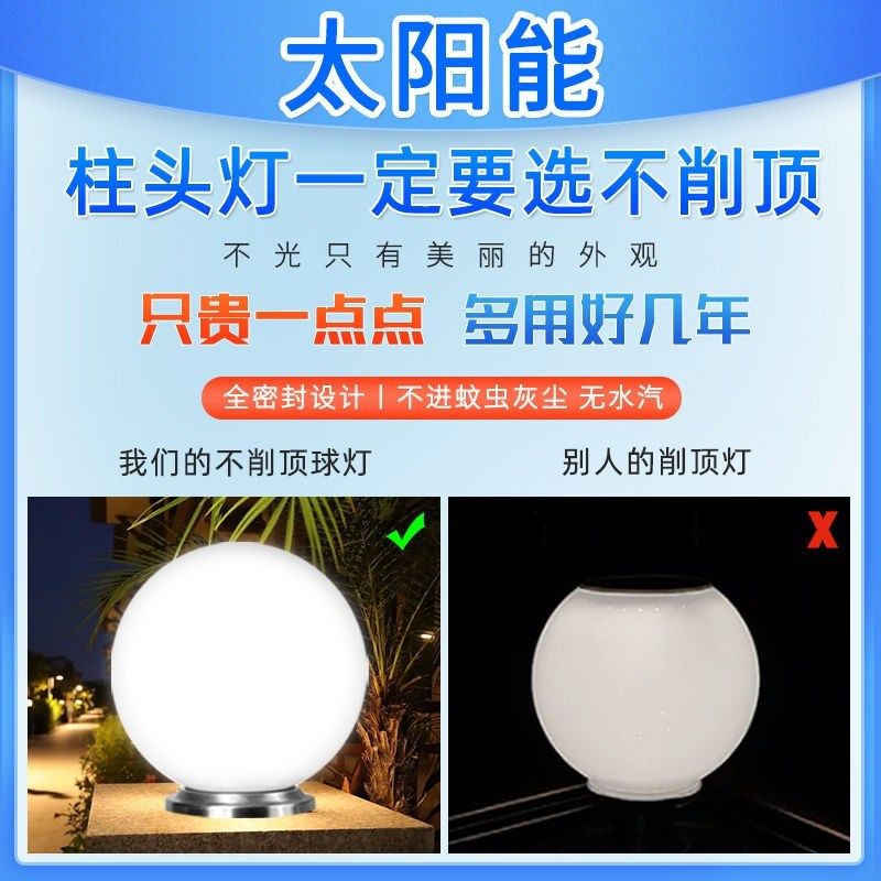 太阳能柱头灯别墅大门柱r子户外防水圆球形围墙灯农村庭院院墙家