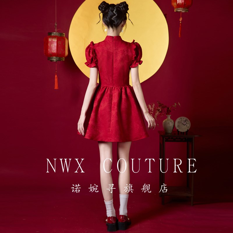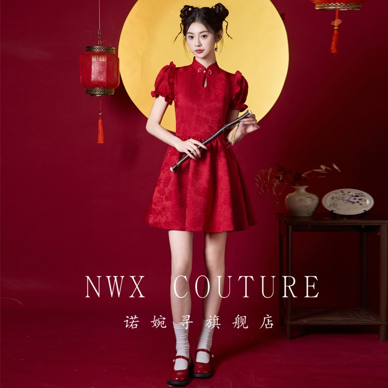 红色旗袍2025新款改良新中式夏季订婚礼服裙小个子短款敬酒服新娘