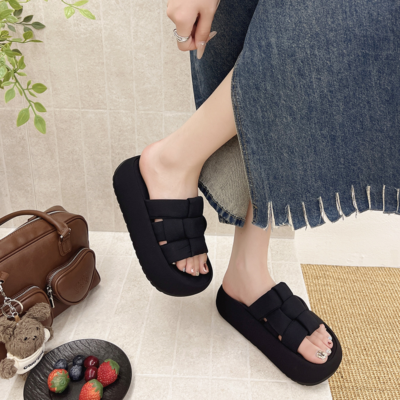 时尚编织厚底凉拖鞋女外穿2025新款夏季百搭增高爆款软底沙滩拖鞋