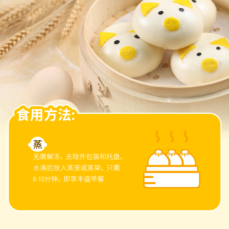 巴比馒头小猪奶黄包300g儿童营养早餐半成品学生速冻面食卡通包子
