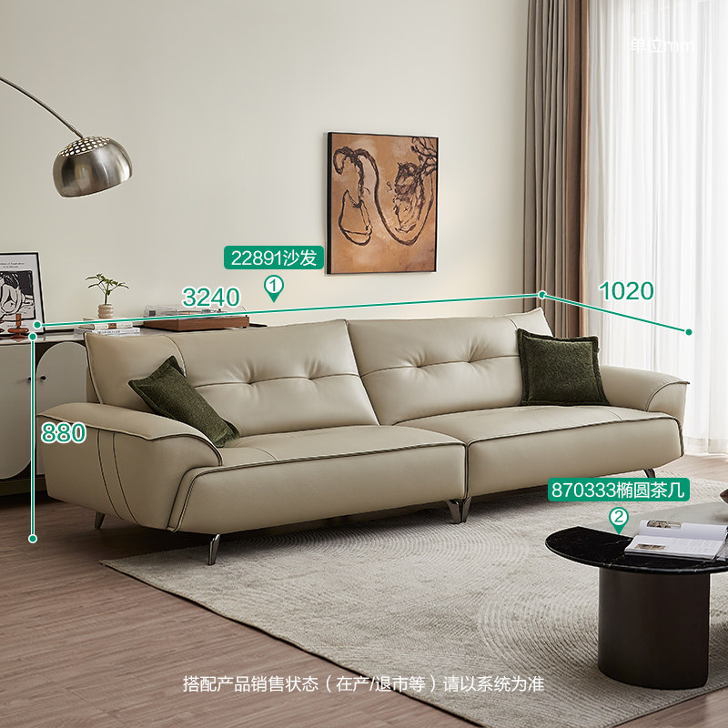 全友家居 门店同款 意式极简 22891 直排一字型真牛皮皮艺沙发