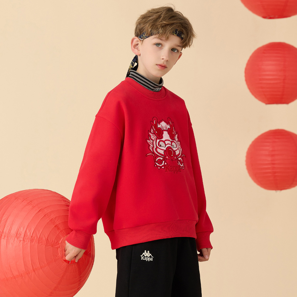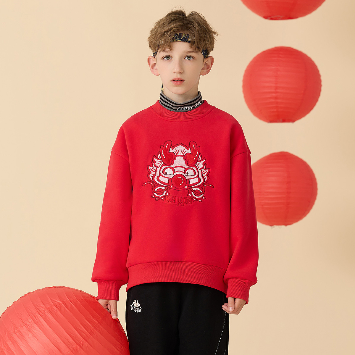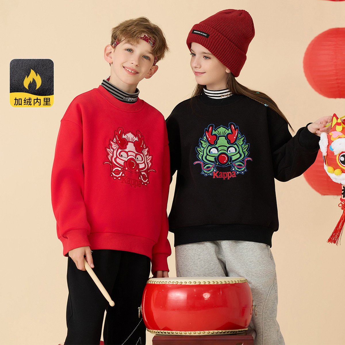 【清仓】Kappa儿童本命年红色卫衣2025冬新款拜年服上衣加绒