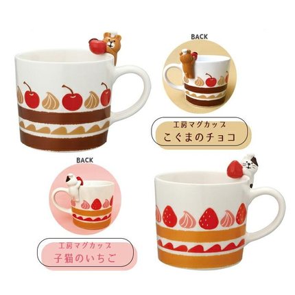 Decole日式手绘水果甜点小熊厨师樱桃/小猫厨师草莓陶瓷马克杯咖