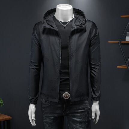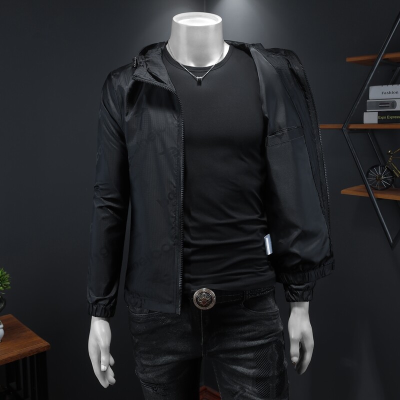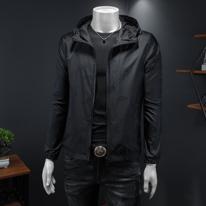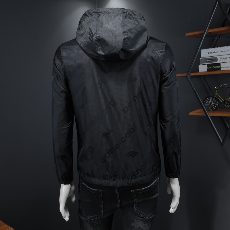 春秋男连帽字母印花外套青年新款大码休闲夹克男装