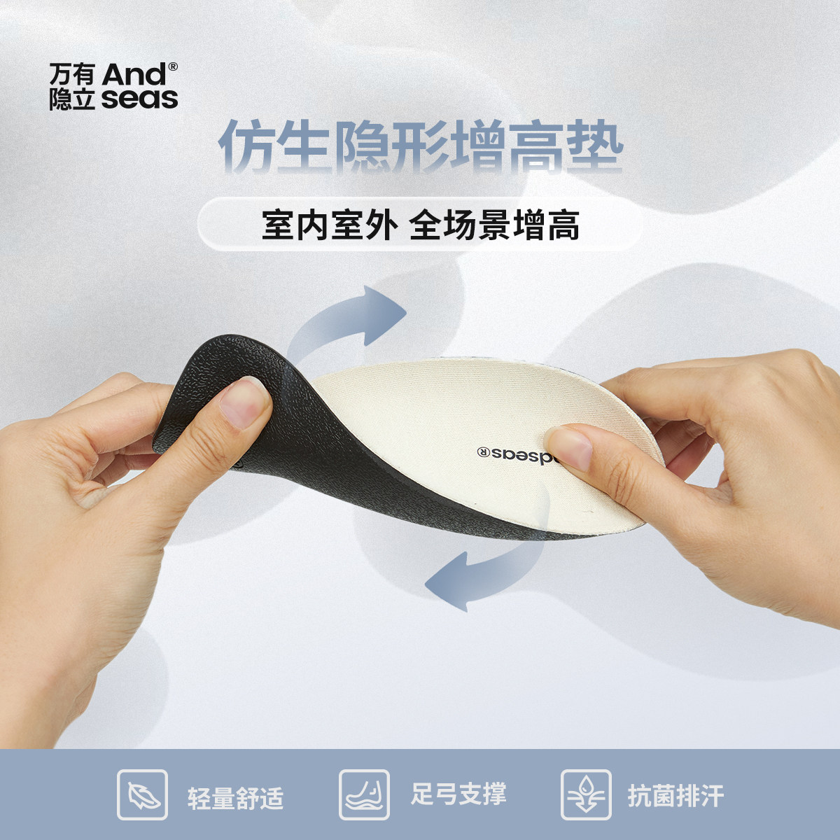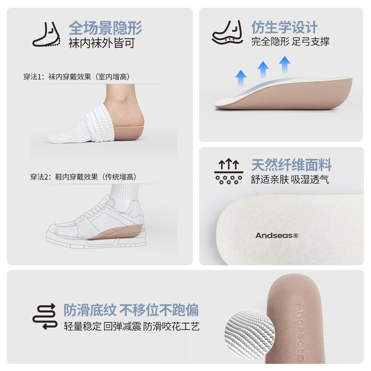 万有隐立andseas仿生隐形内增高垫舒适足弓支撑防臭男女七分鞋垫