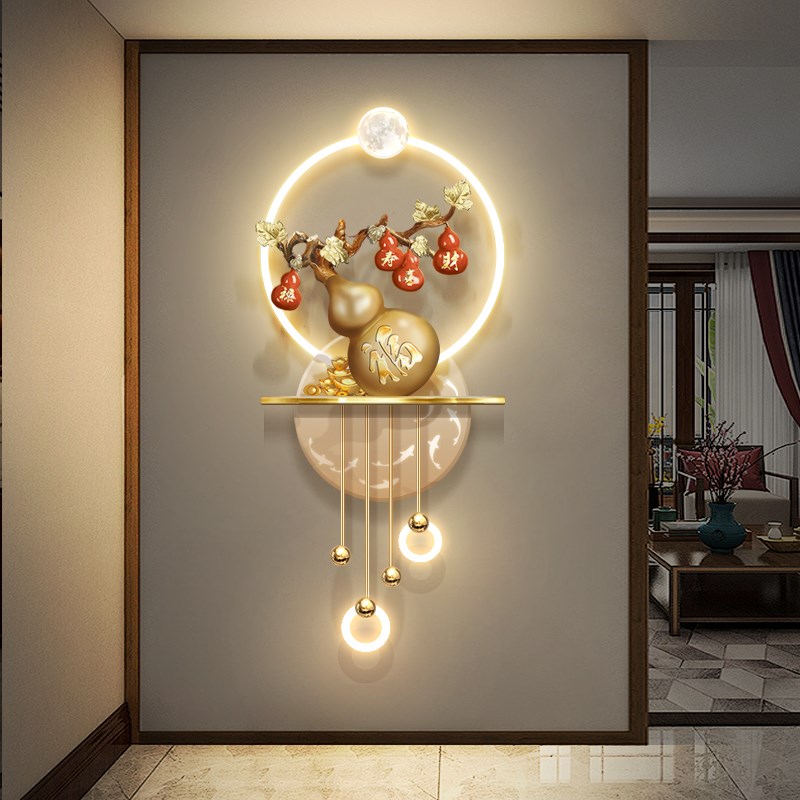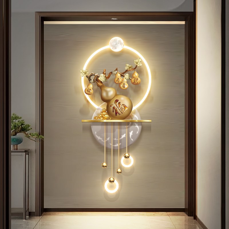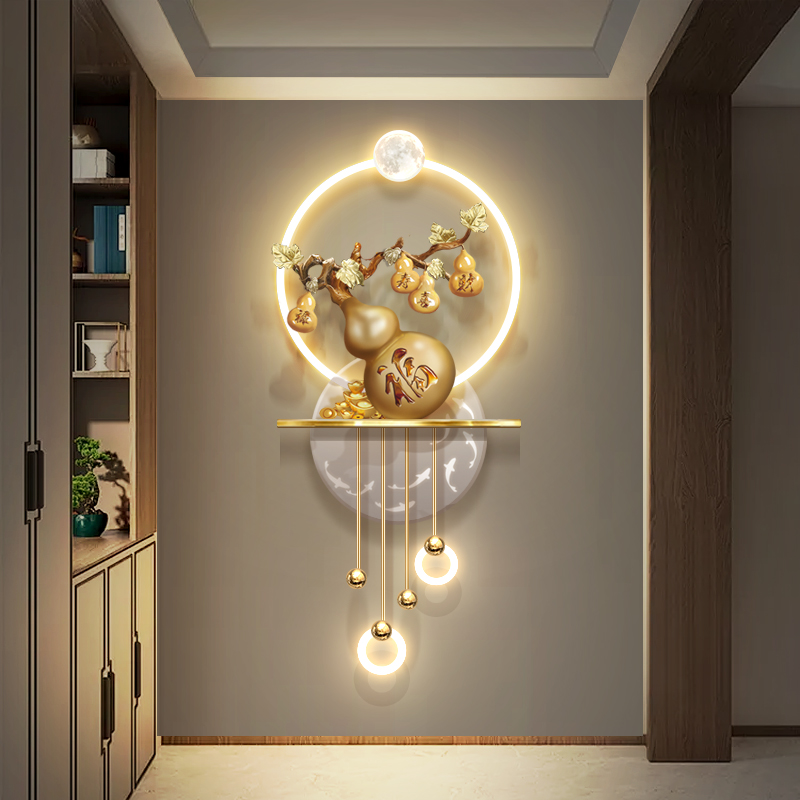 入户玄关5D立体葫芦装饰画过道走廊尽I头新中式福禄壁画灯福字挂