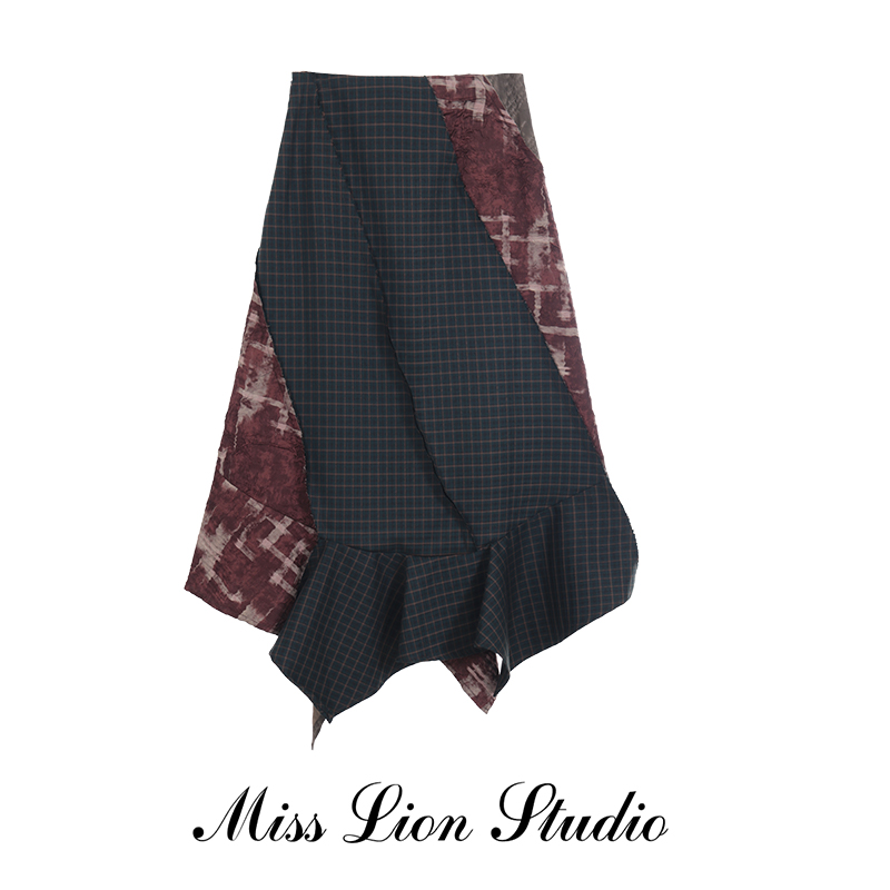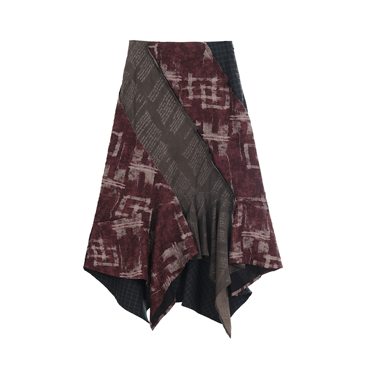 复古拼接设计感小众高腰显瘦不规则半身裙女2025春季新款百搭长裙