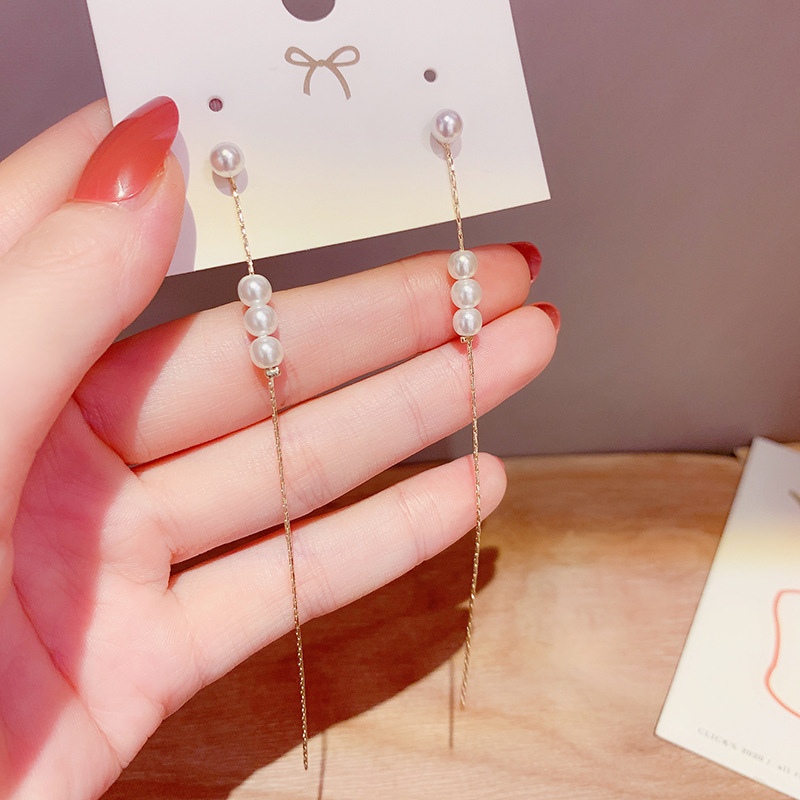 韩国东大门一字珍珠流苏长款耳环时尚气质两戴耳钉饰品女S925银针