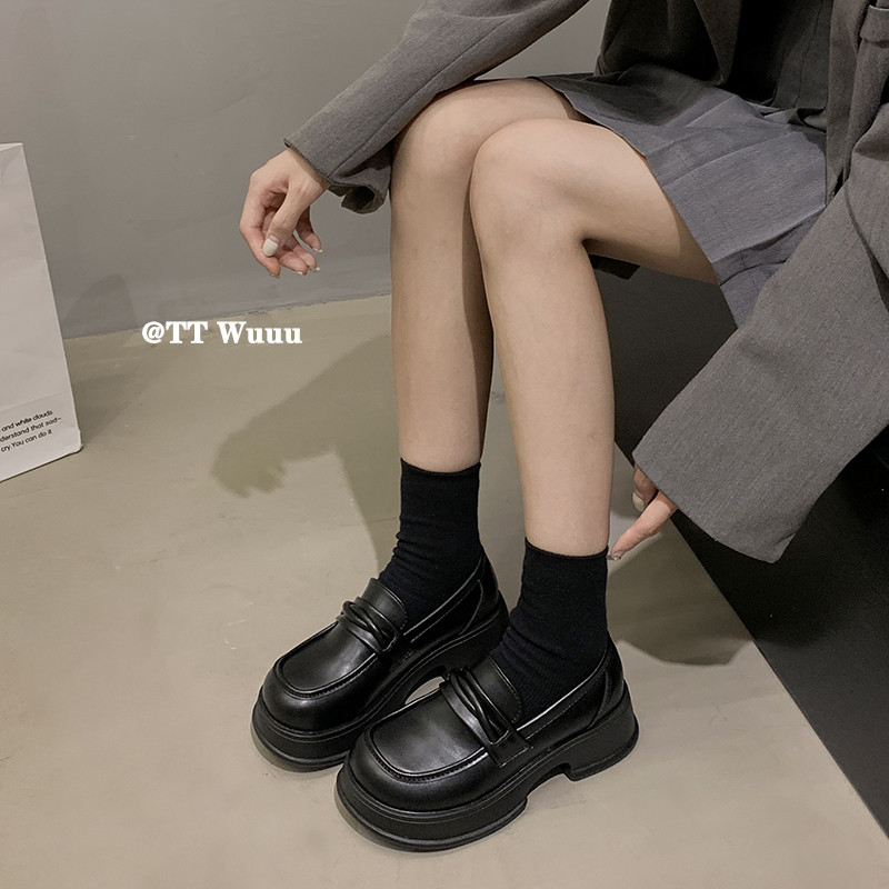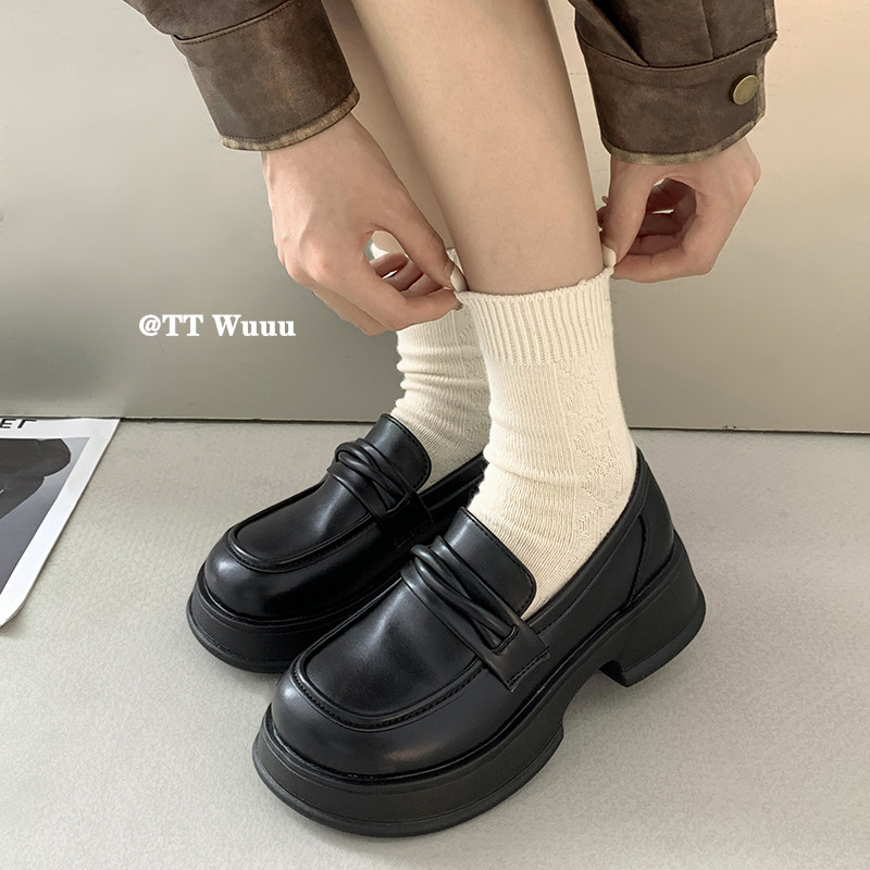 TTWuuu一脚蹬厚底乐福鞋英伦学院风百搭圆头jk小皮鞋制服鞋单鞋女