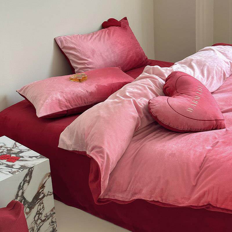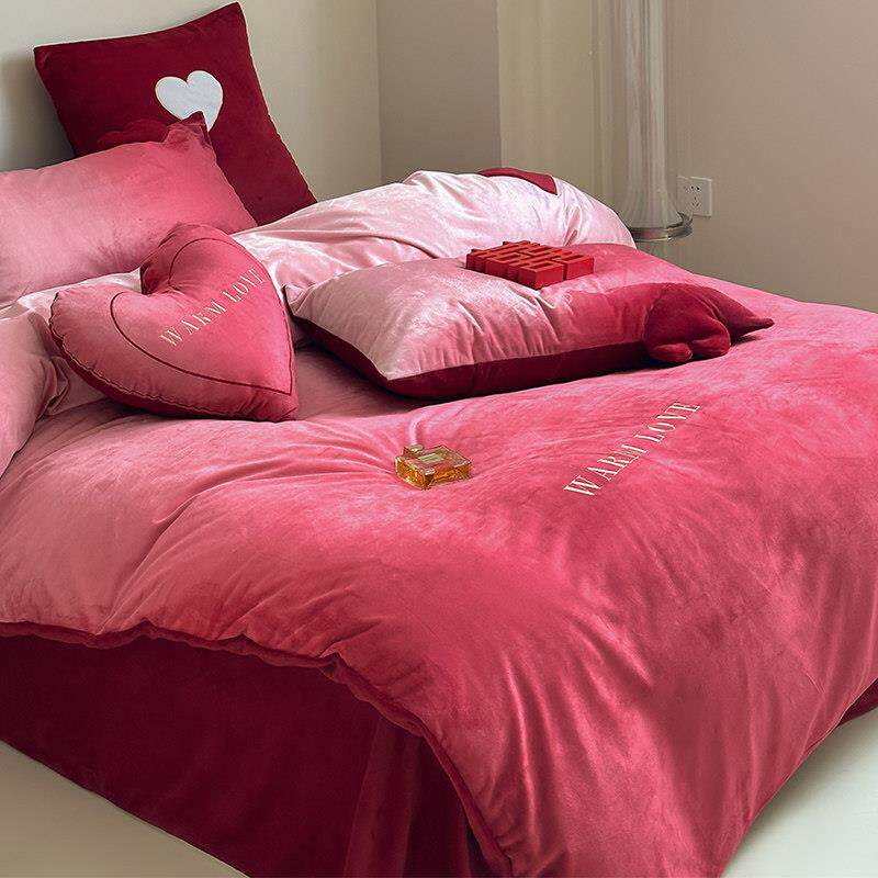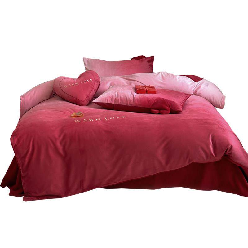 ins风冬季保暖渐层色牛奶绒被套宝宝绒双人床单红色结婚庆四件套