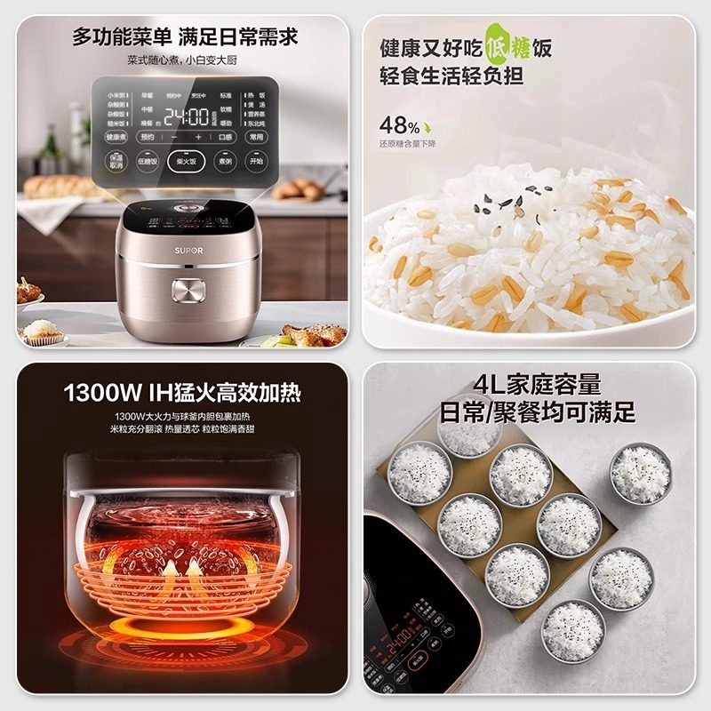 苏泊尔低糖电饭煲0无涂层内胆家用316L米汤分离4-6多功能IH电饭锅