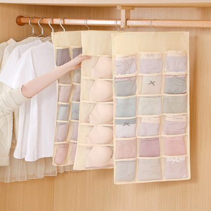 悬挂式双面分格布袋内衣收纳网挂袋内裤文胸衣柜学生宿舍整理神器