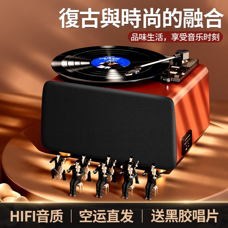 橙迪黑胶唱片机复古留声机蓝牙音箱音响客厅欧式便携电唱机LP礼物