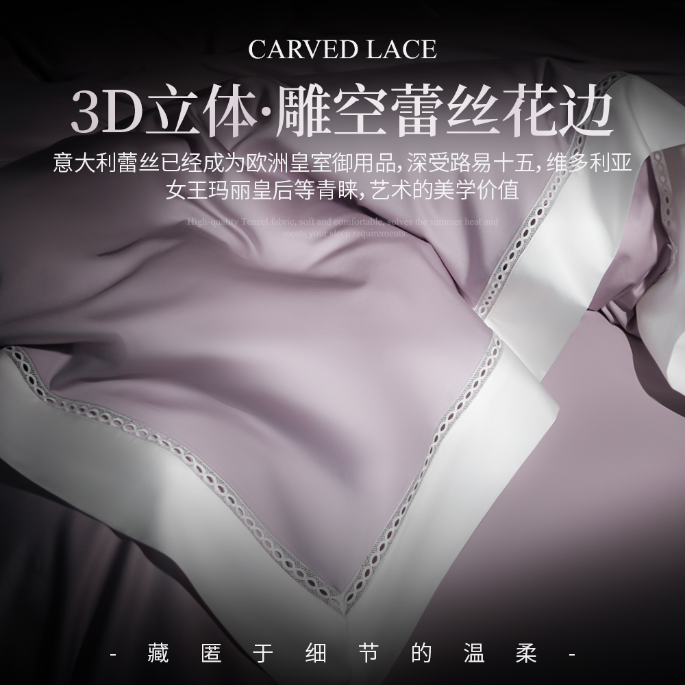 120支纯色双面天丝四件套轻奢简约冰丝丝滑被套床单床上用品