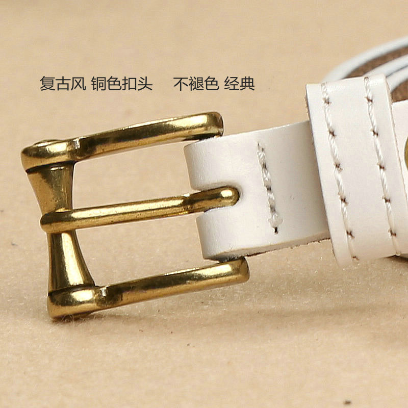 白色夏季连衣裙学生纯牛皮腰带