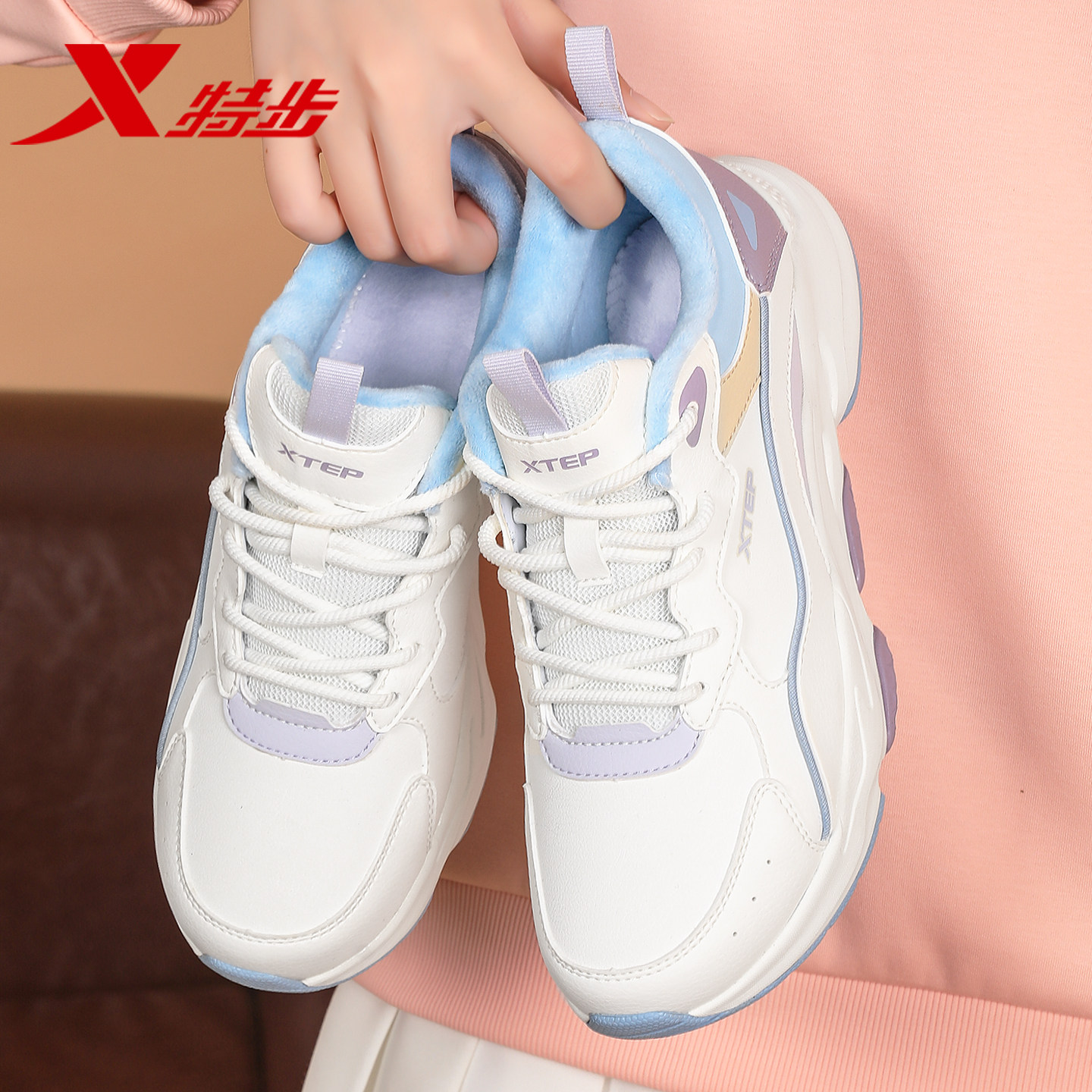 特步冬季加绒女鞋棉鞋秋冬正品保暖休闲鞋运动鞋防水皮面棉鞋女款