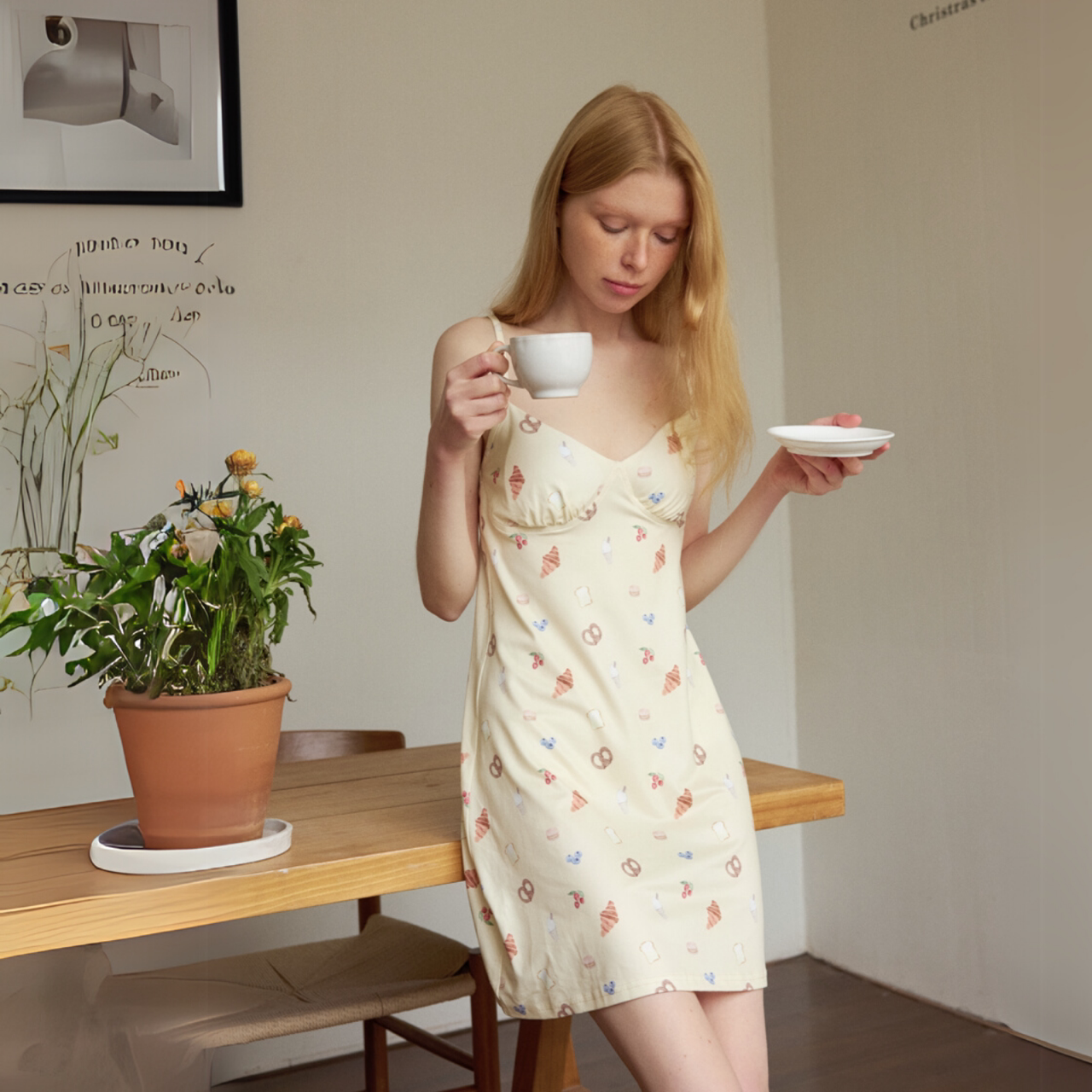 muabomb吊带裙性感舒适带胸垫外穿春夏睡裙碎花法式睡衣女家居服