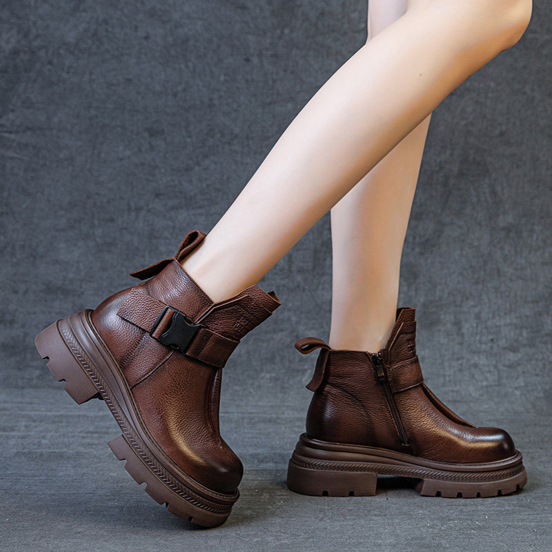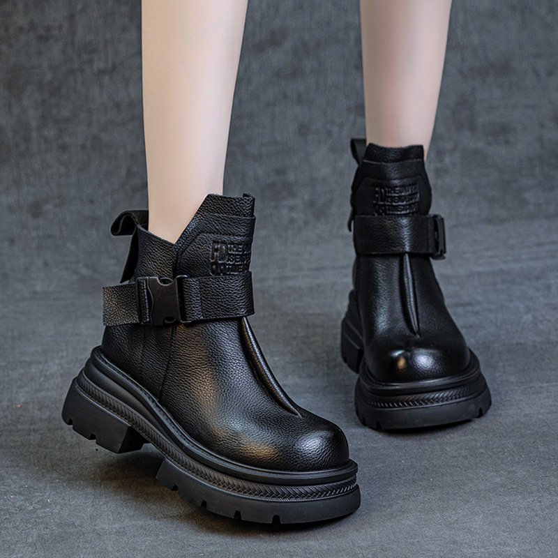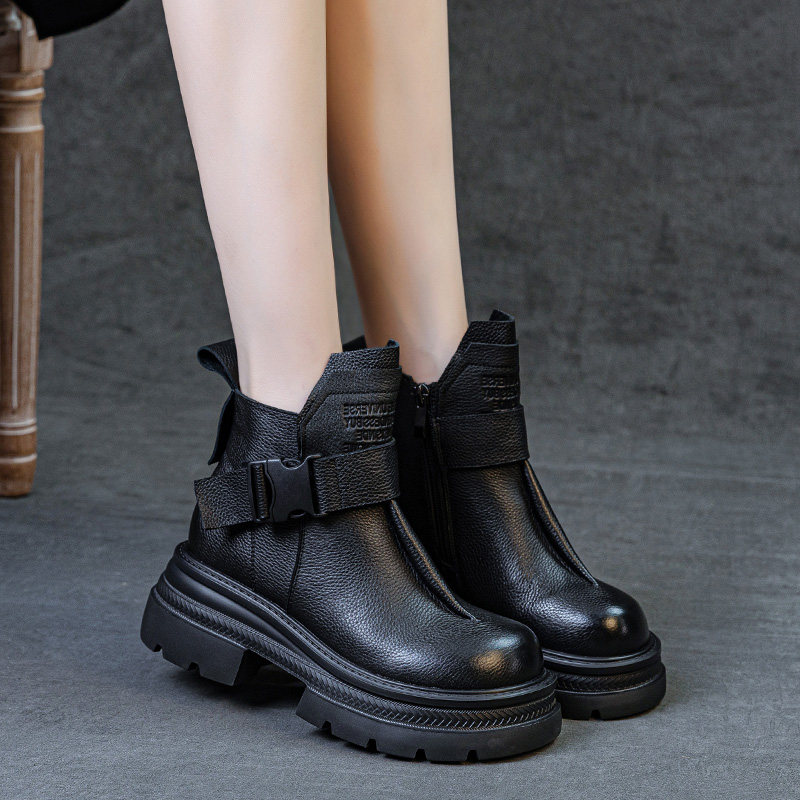小个子显高真皮女士短靴子2025秋冬季新款真皮马丁靴厚底百搭复古