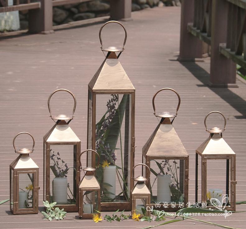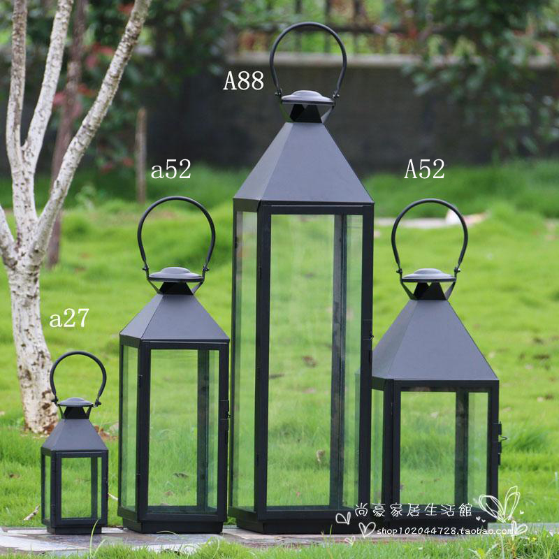 户外欧式古典铁艺烛台摆件 手提铁皮玻璃落地风灯落地家居装饰