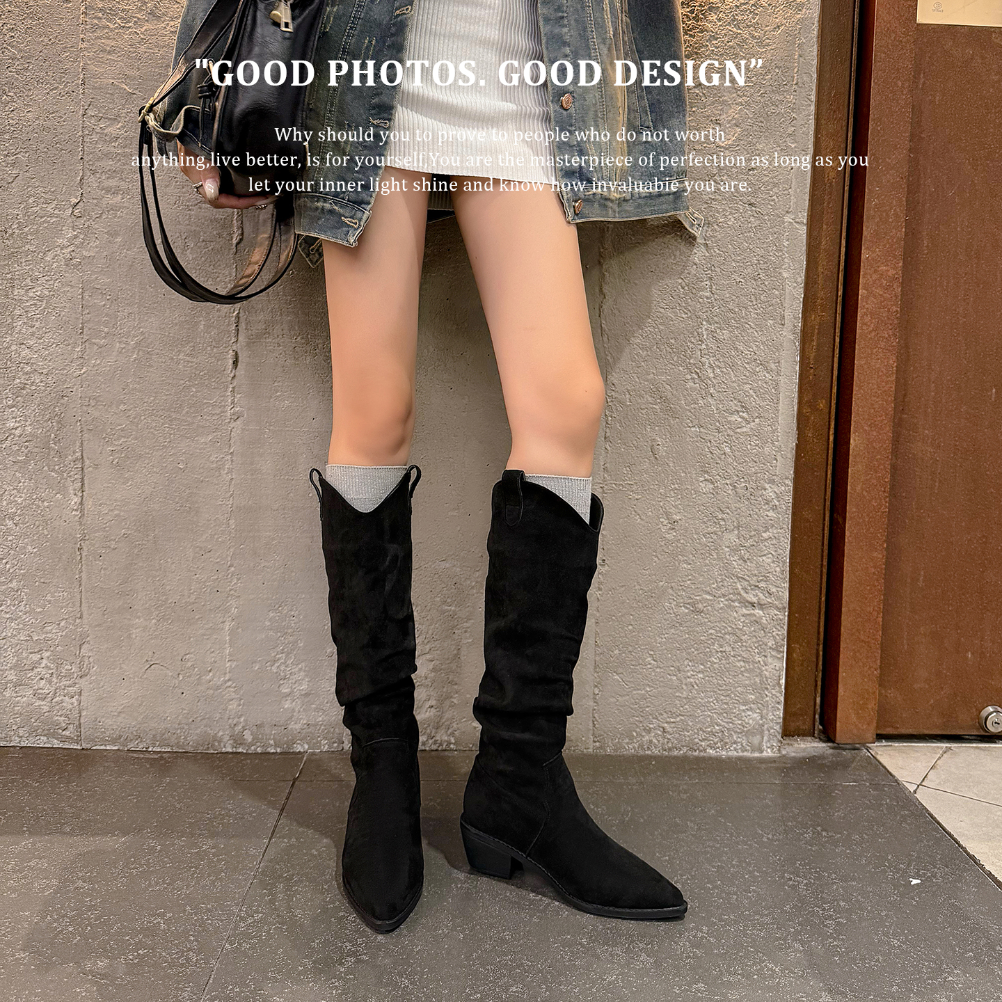 堆堆长靴女西部牛仔靴新款粗腿骑士靴胖mm长筒靴大筒围大码女靴子
