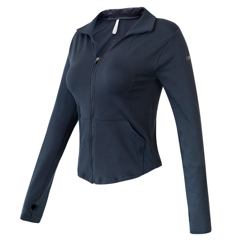 健身女孩弹力修身瑜伽服长袖显瘦夹克运动外套跑步训练上衣秋冬款