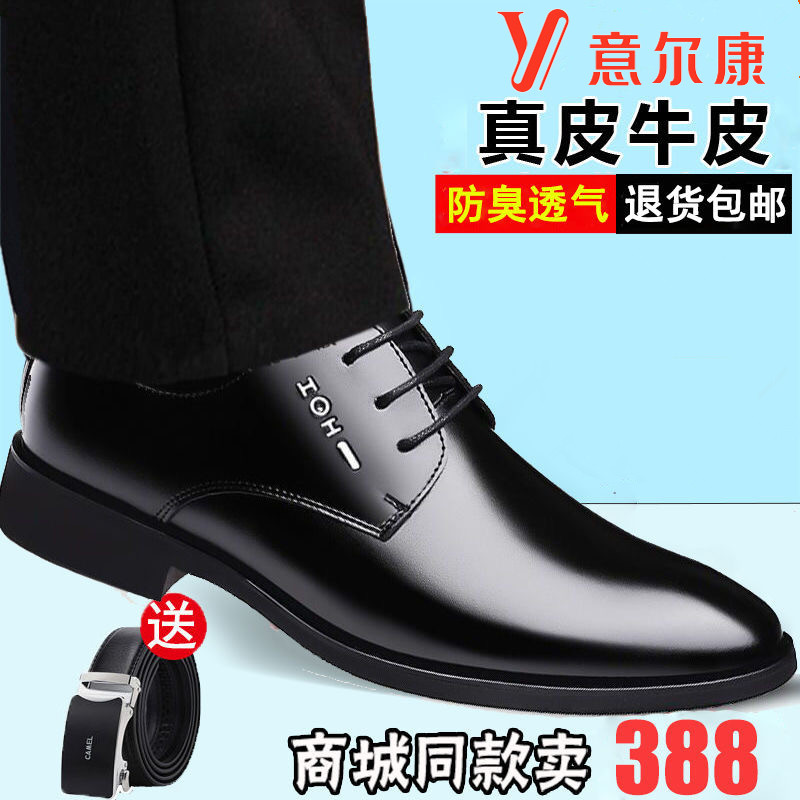 意尔康皮鞋男夏季商务正装休闲男士真皮加绒保暖内增高上班德比鞋