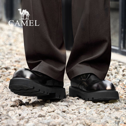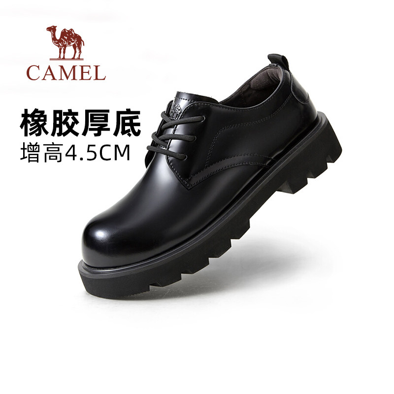骆驼男鞋2025冬季真皮圆头德比结婚新郎大头皮鞋厚底增高休闲英伦