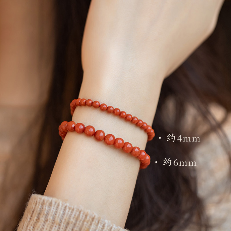 普陀山的祝福天然凉山南红玛瑙手串小米珠单圈极细柿子红手链