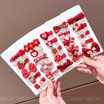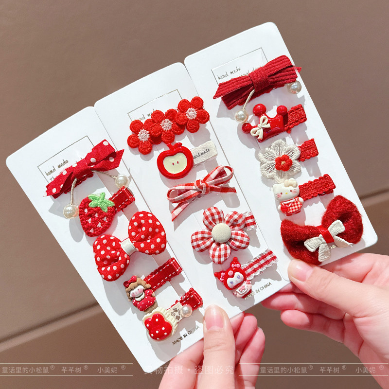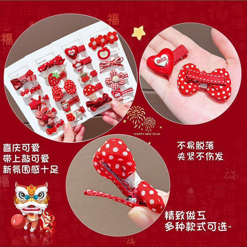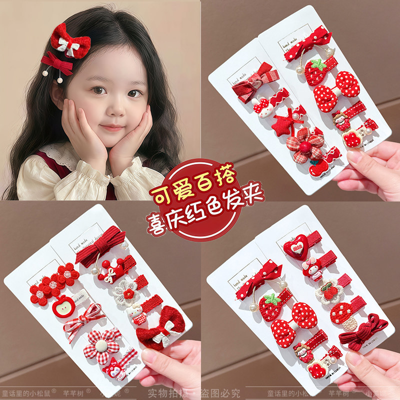 小女孩新年红色花朵发夹儿童卡通动物发卡公主前额碎发刘海夹发饰
