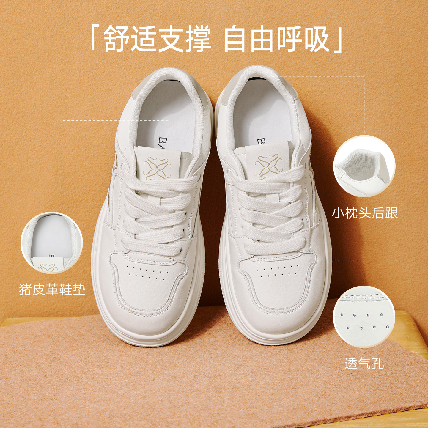 百思图2025春季新款商场同款小白鞋时尚潮流运动女休闲鞋D3762AM6
