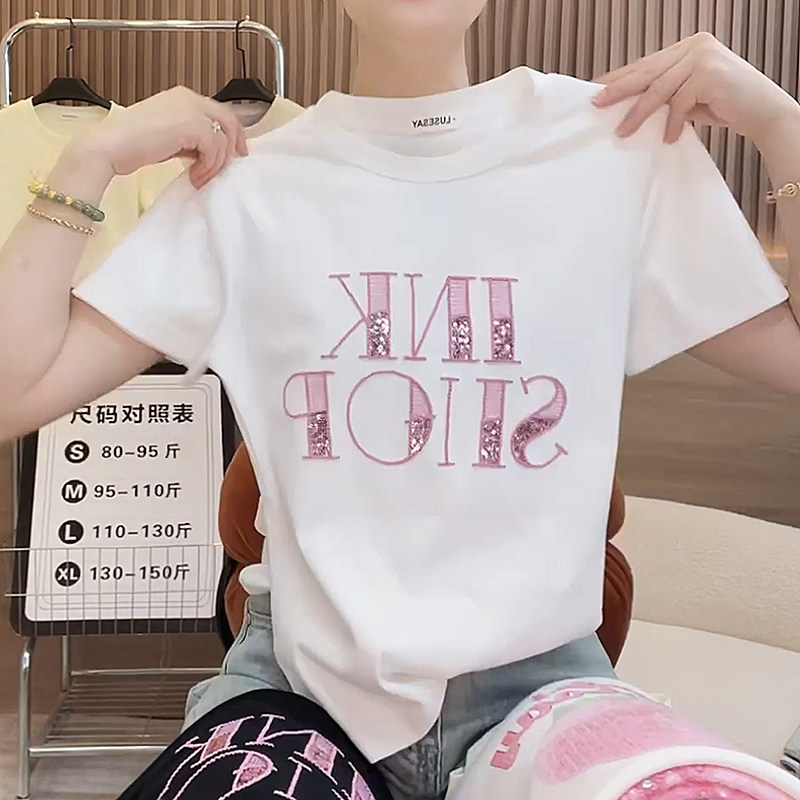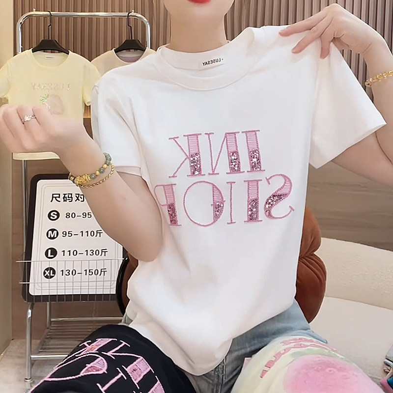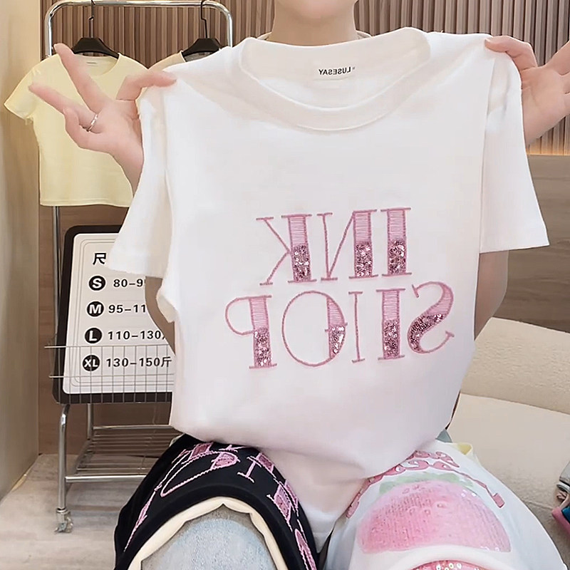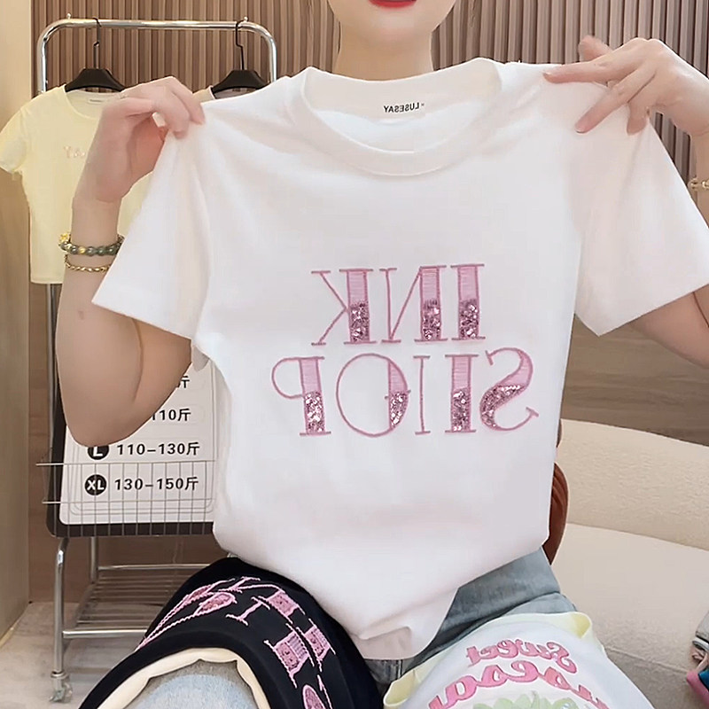 重工刺绣短袖恤女2025夏季新款大码宽松显瘦纯棉百搭女士半袖上衣