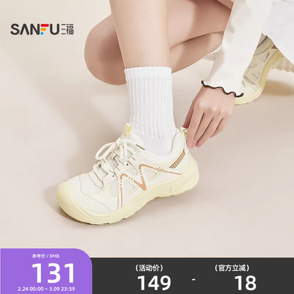 三福女运动鞋春季盐系漫游网面拼接芒果头溯溪鞋女鞋853501