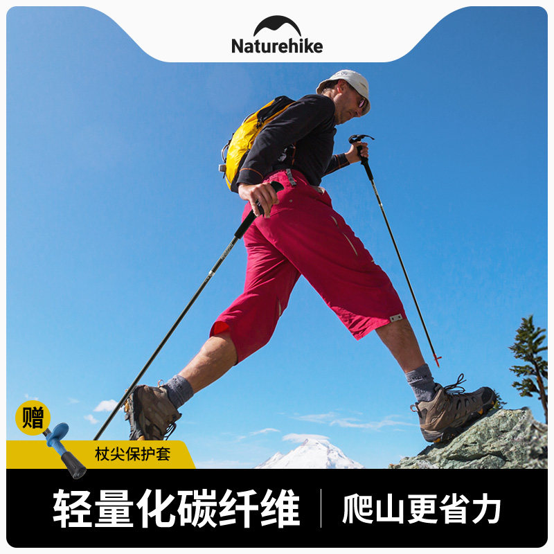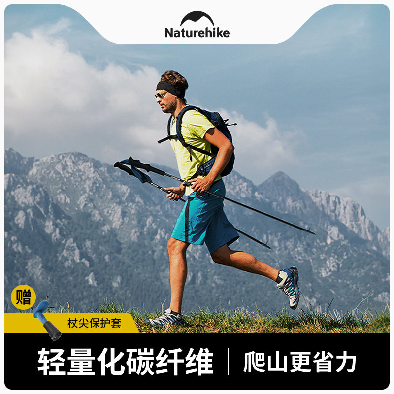挪客碳纤维登山杖四节折叠碳素超轻徒步越野手杖专业户外跑山杖