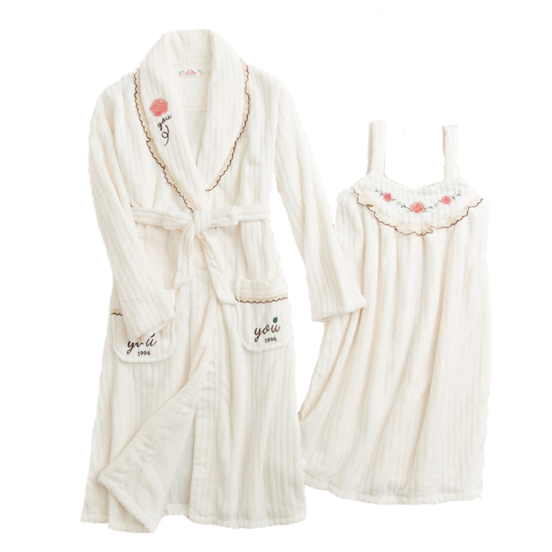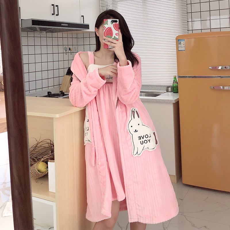 珊瑚绒秋冬到脚踝韩版加绒浴袍