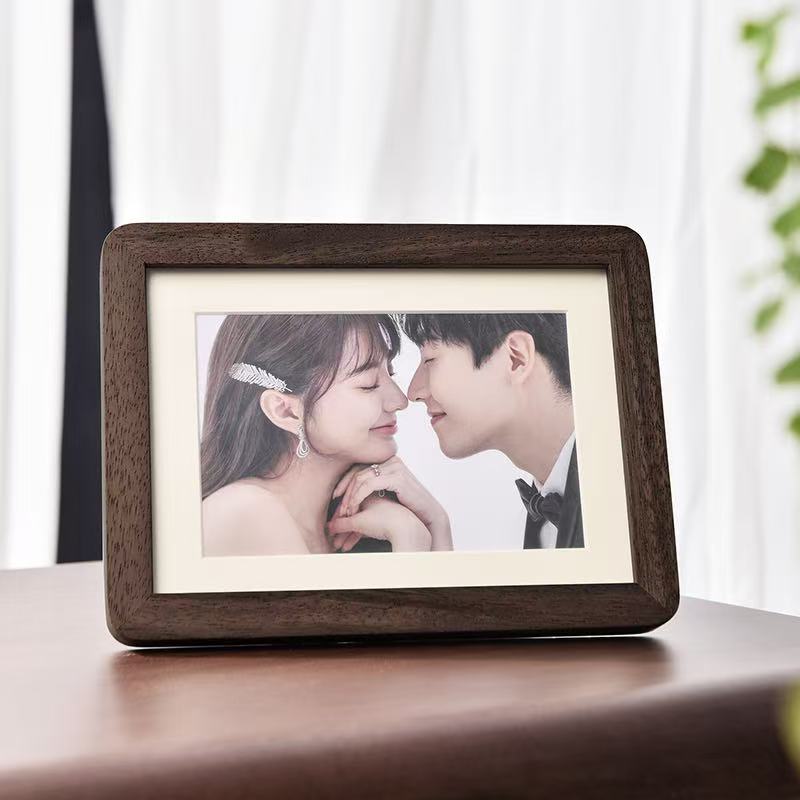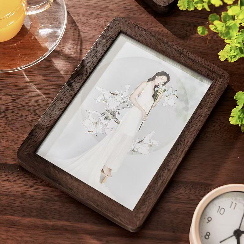 HIMORE海马体胡桃木6寸相框家居饰品实木材质ins简约桌面摆件摆台
