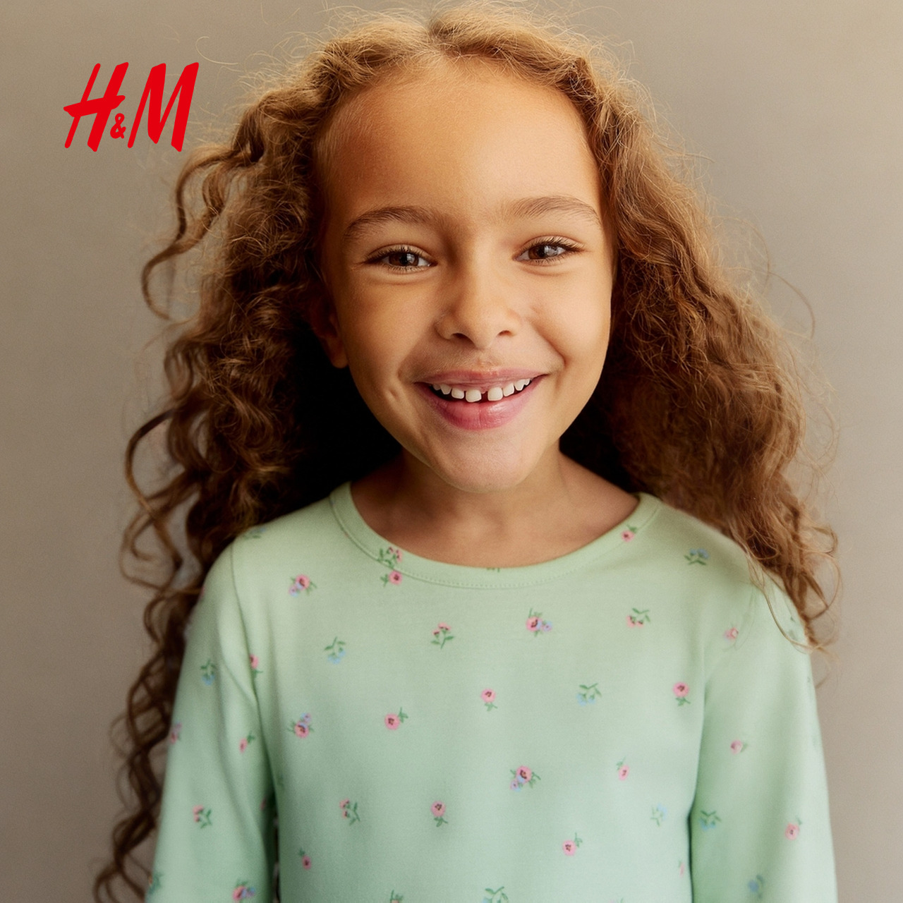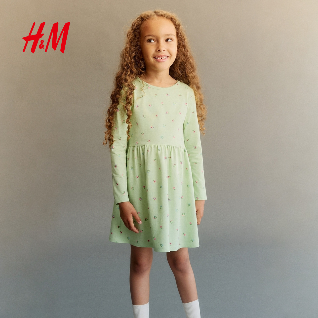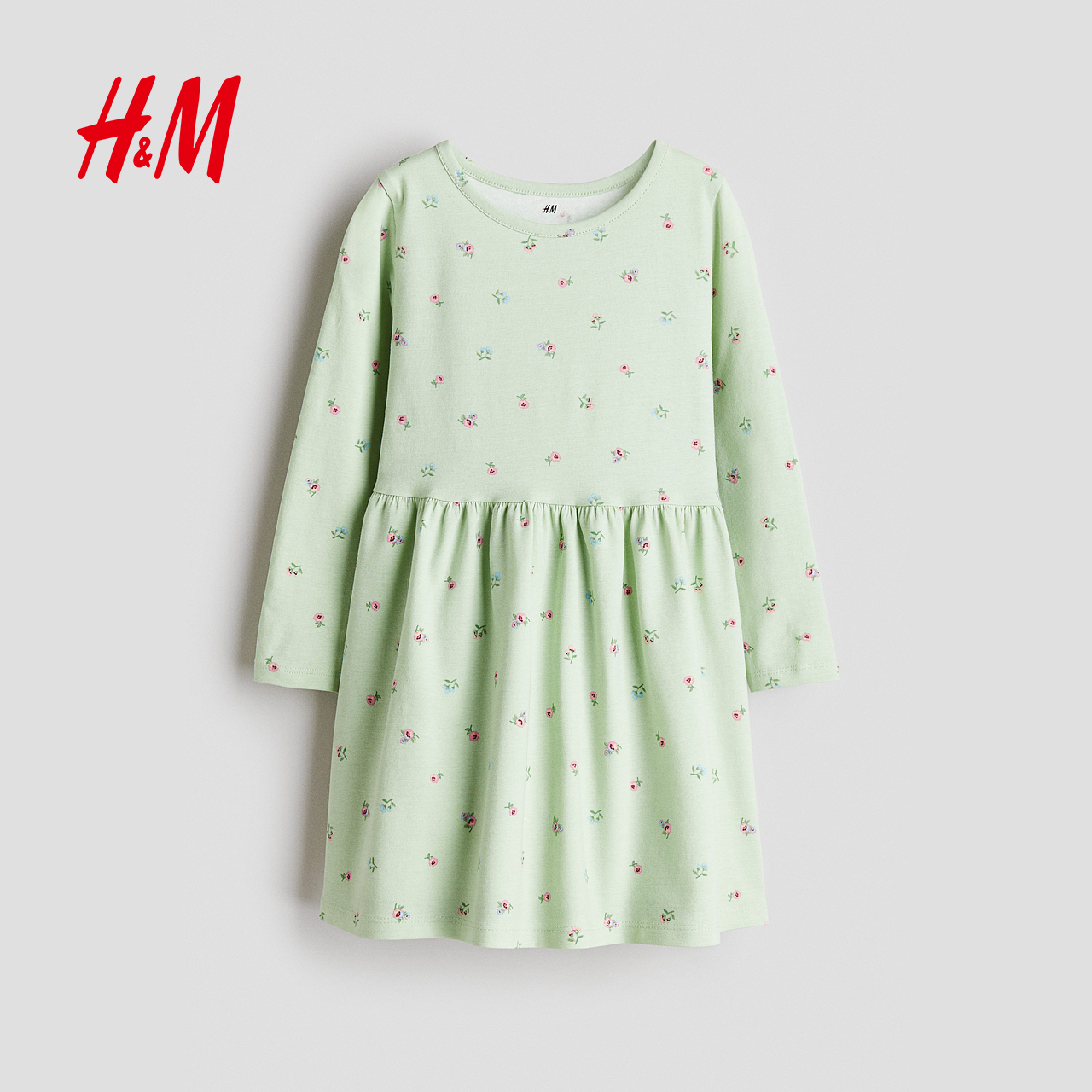 HM童装儿童女童连衣裙2025年秋新款可爱公主风印花喇叭裙1245392