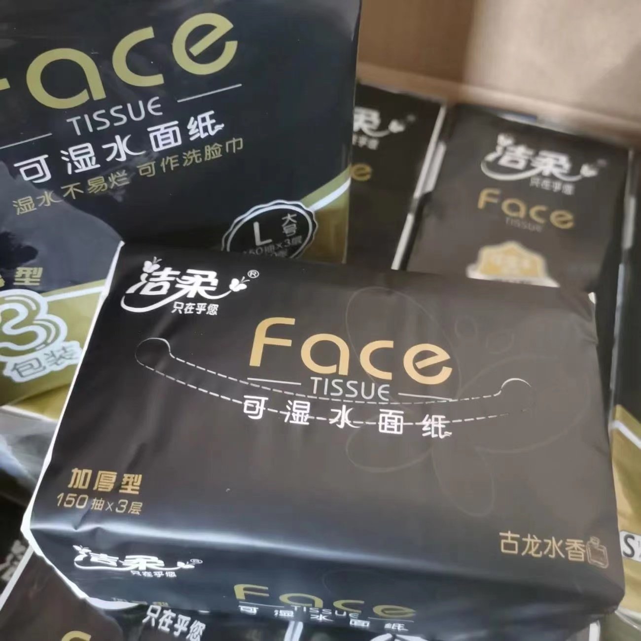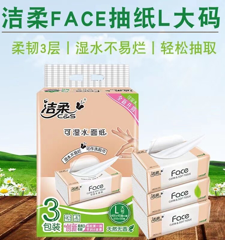 洁柔抽纸150抽可湿水用古龙水香家用餐巾纸软包装面巾纸卫生纸L码