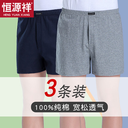 恒源祥男士内裤男纯棉四角阿罗裤高腰宽松加肥加大码全棉平角短裤