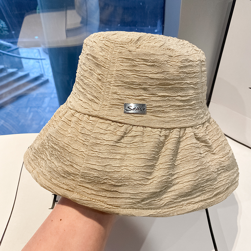 新款百搭泡泡压皱帽子女春夏季素颜显脸小渔夫帽遮阳防晒字母盆帽