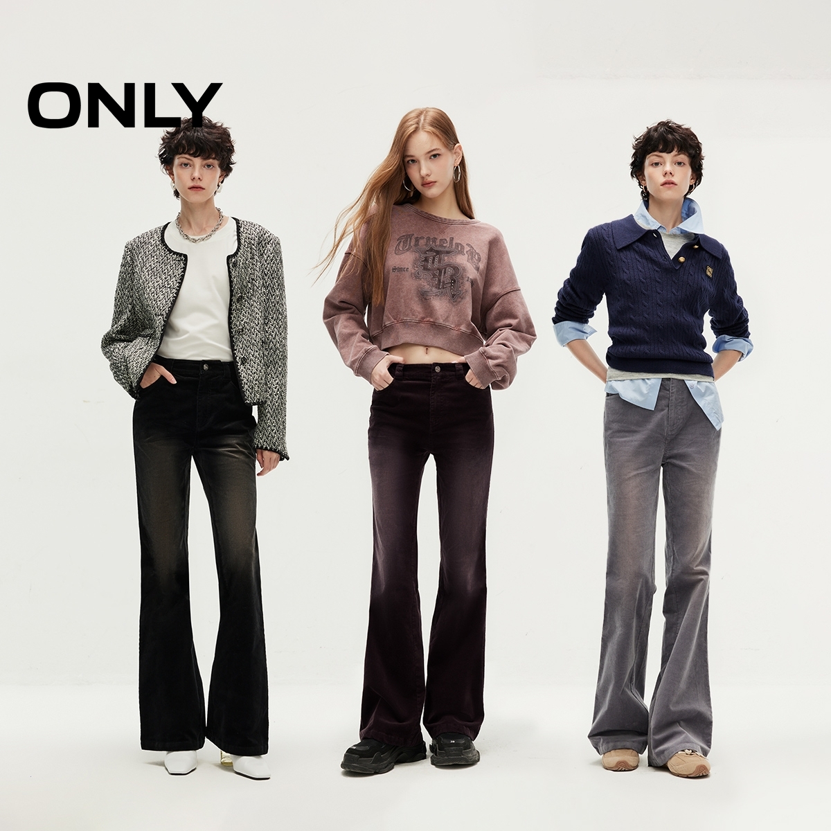 【ONLY奥莱】秋季莫代尔百搭撞色高腰微喇长裤休闲裤女