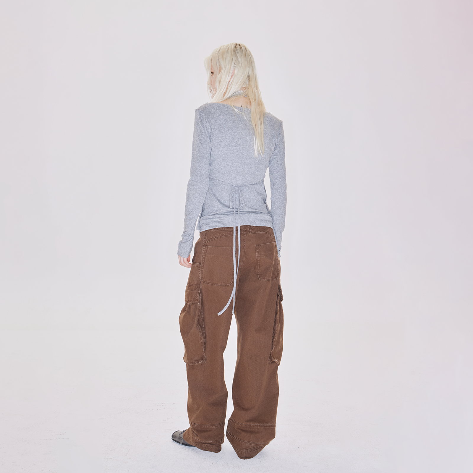 【新品】RURE马甲绑带两件套T恤衬衫进口羊毛设计感打底衫上衣