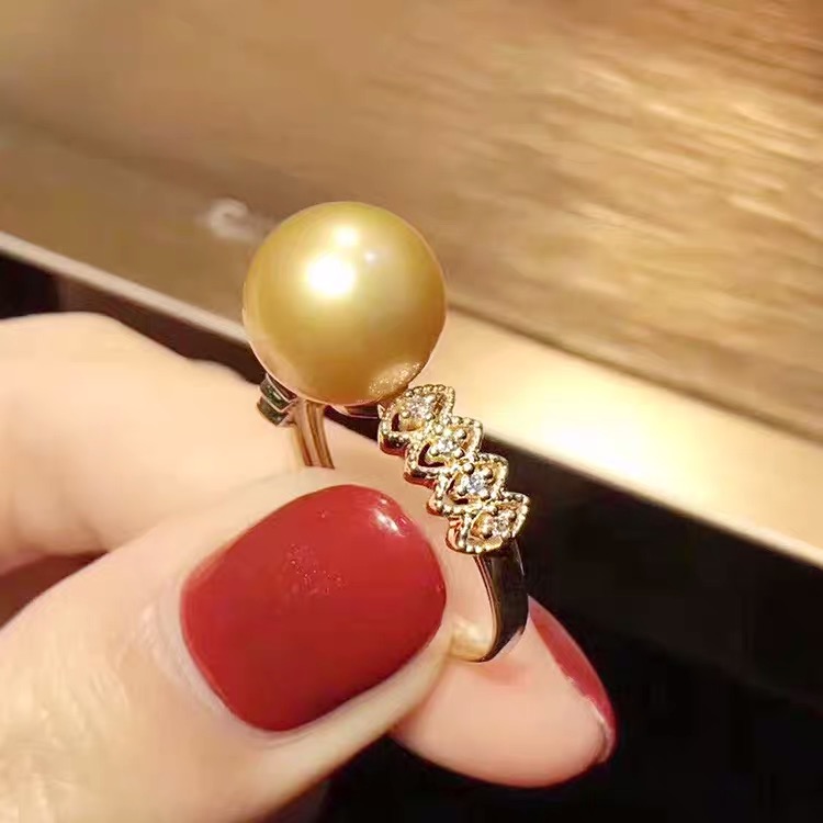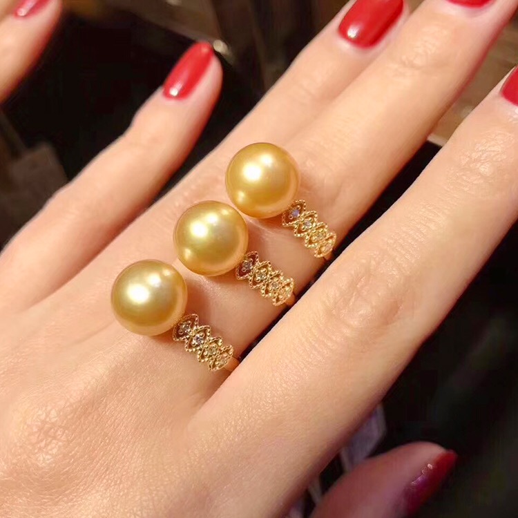 南洋金珠戒指海水珍珠金色正圆几乎无瑕强光正品真珍珠指环送女友