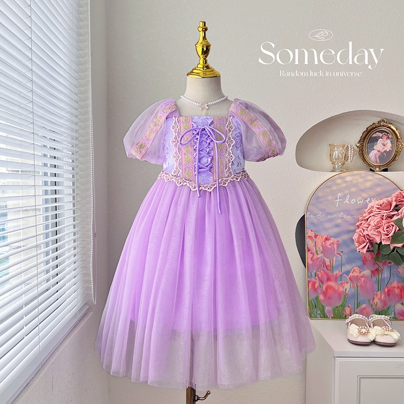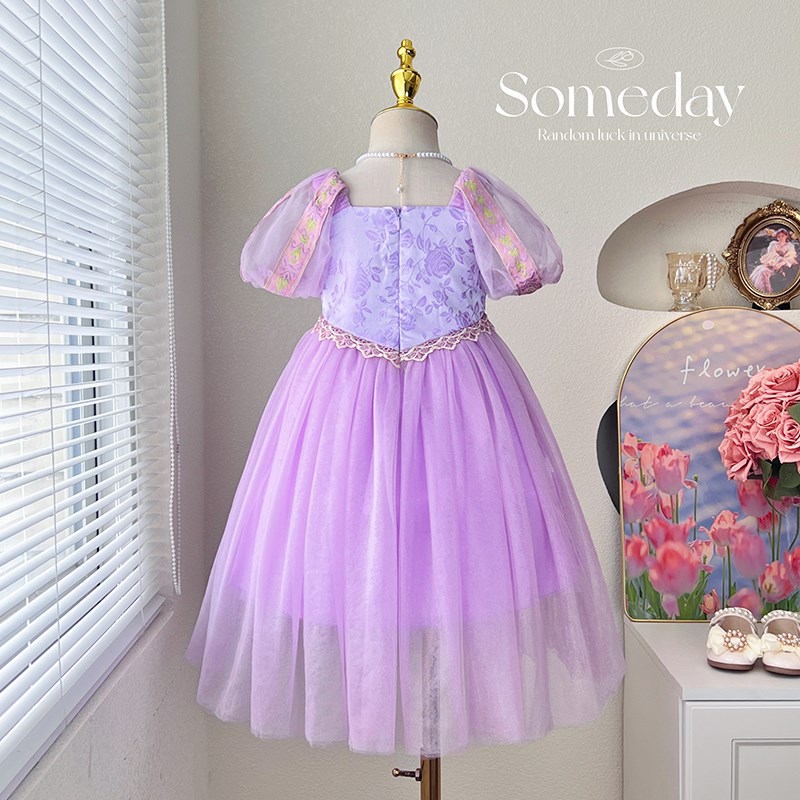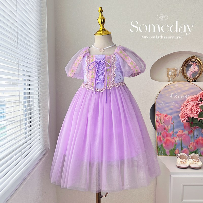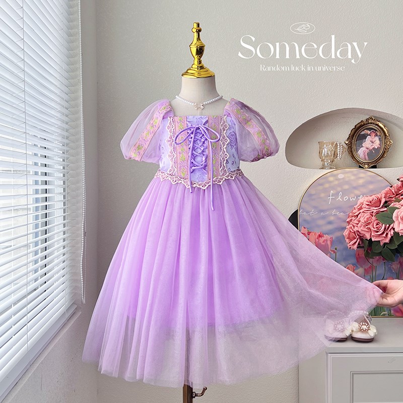 乐佩公主裙女童夏季礼服裙儿童蓬蓬网纱裙子小女孩洋气紫色连衣裙