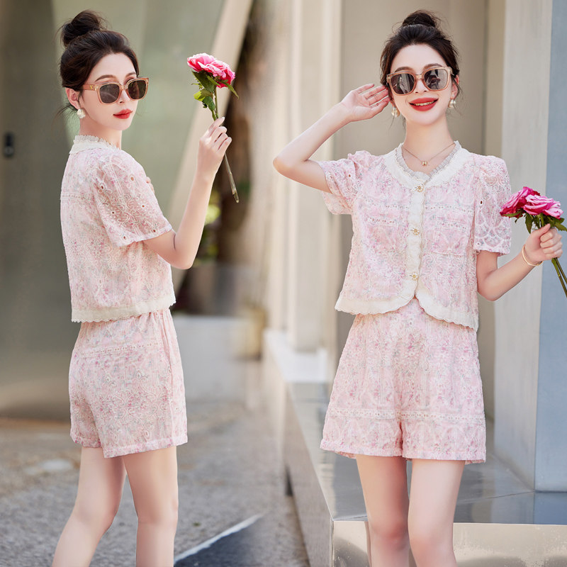 蕾丝短裤小香风套装女名媛