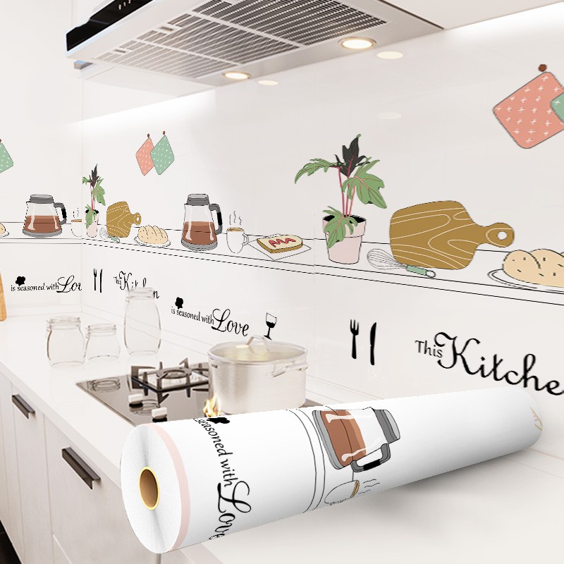 厨房防油贴纸2021新款加厚环保家用壁纸自粘现代简约墙纸防水墙贴