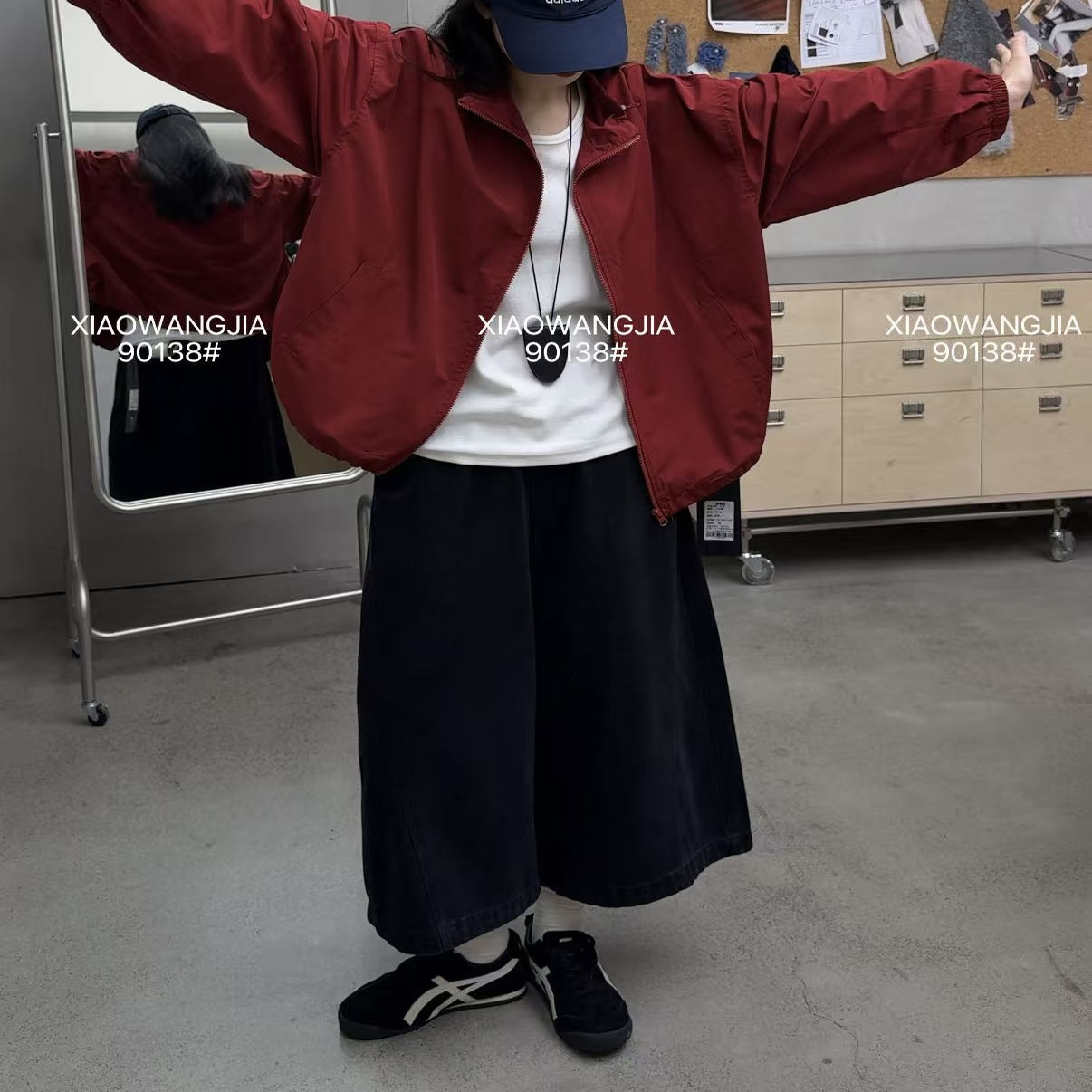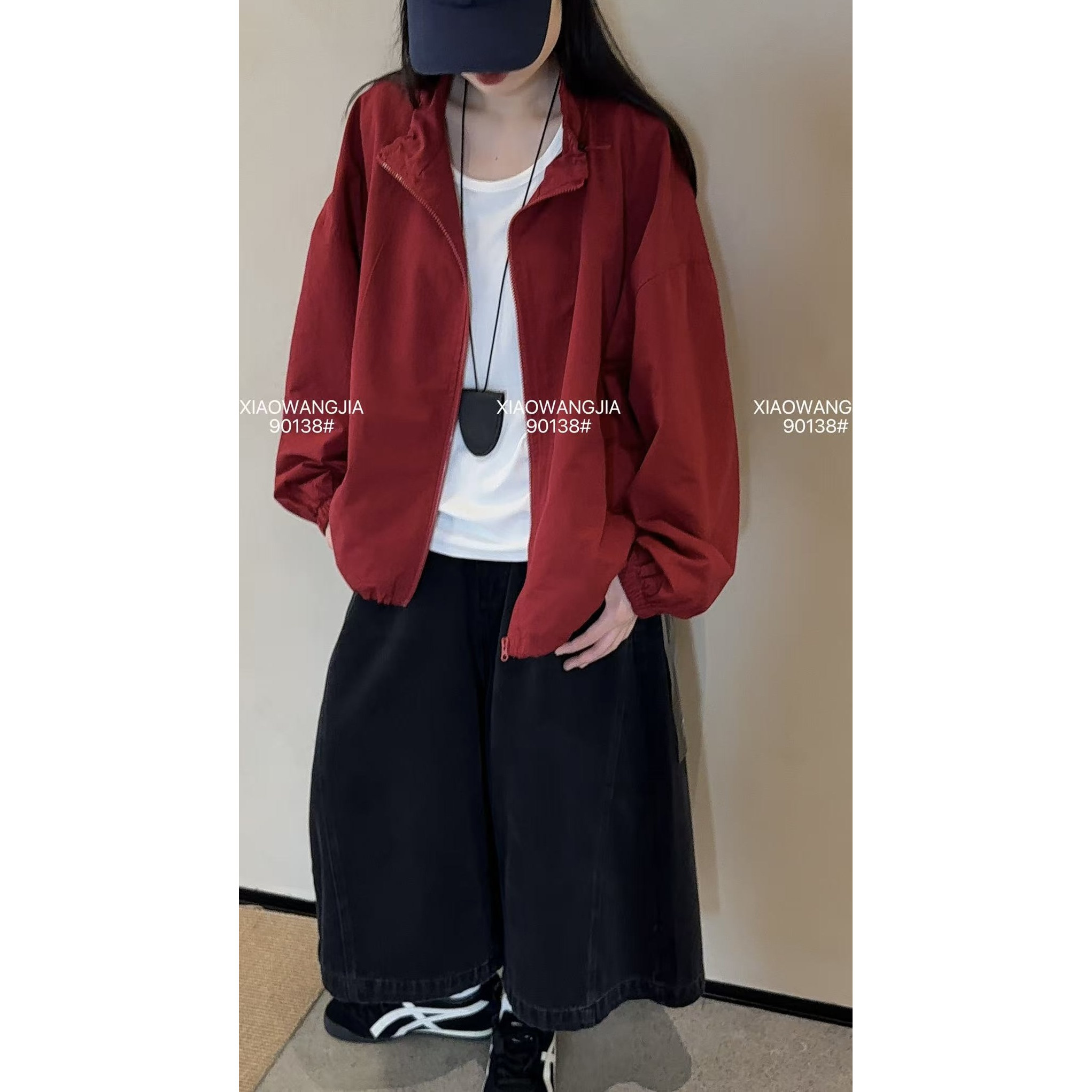 小王家90138秋新款韩版宽松大码胖mm休闲慵懒松弛风立领收腰外套